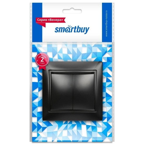 выключатель SMARTBUY (SBE-01b-10-SW2-0-c) Венера, 2-клавишный,черный