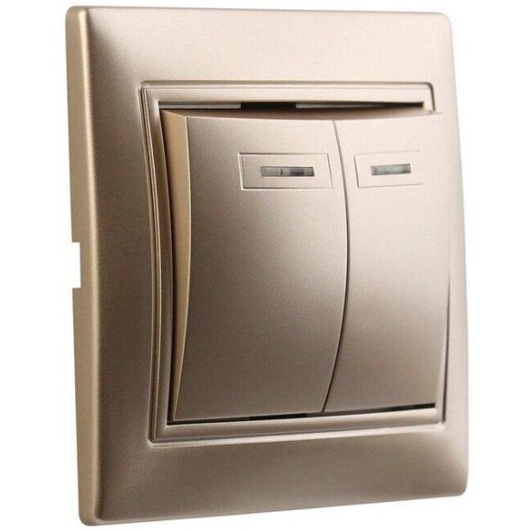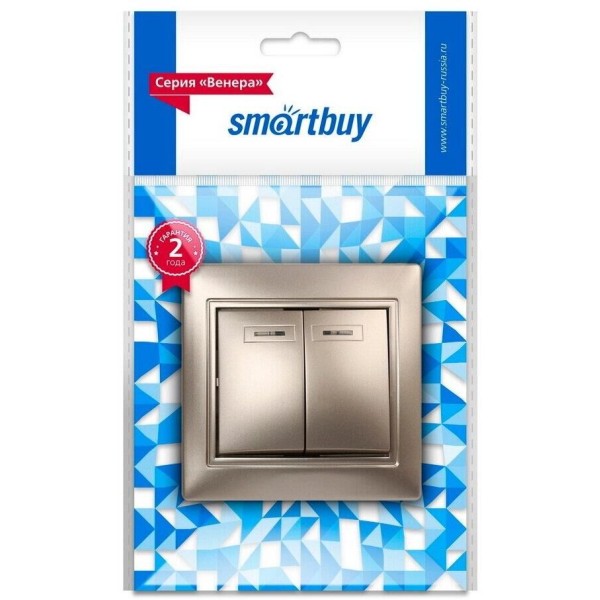 выключатель SMARTBUY (SBE-01c-10-SW2-1-c) Венера, 2-клавишный,шампань