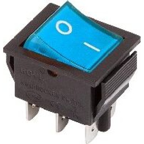 Выключатель клавишный 250V 15А (6с) ON-ON синий с подсветкой