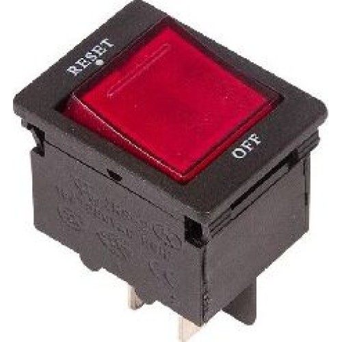 Выключатель - автомат клавишный 250V 15А (4с) RESET-OFF красный с подсветкой