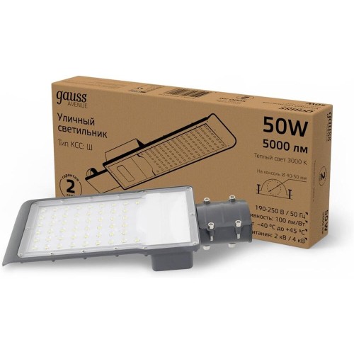 Светильник светодиодный Avenue ДКУ 50Вт 4000К IP65 5000лм 355х155х57 190-250В КСС "Ш" GAUSS 62953425