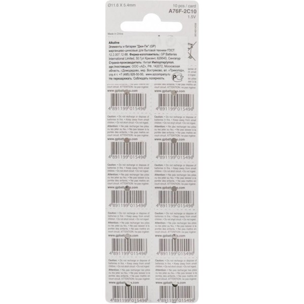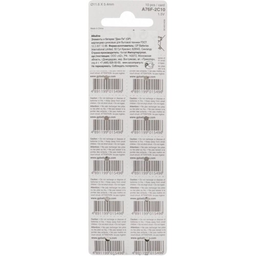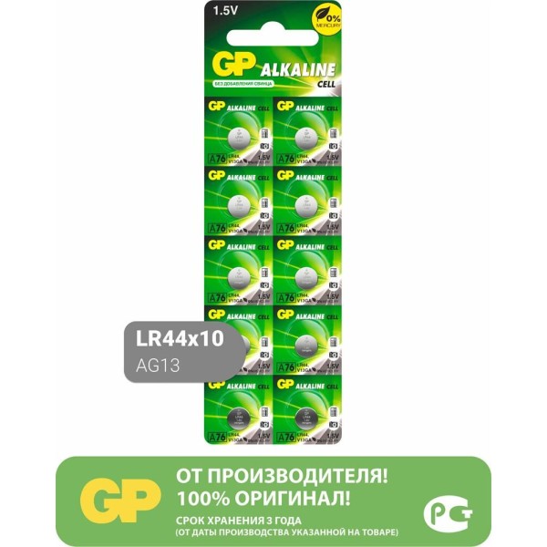 Элементы питания GP A76-BC10 (LR44, G13, V13GA) (A76FRA-2C10)
