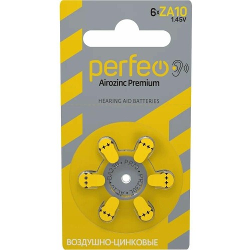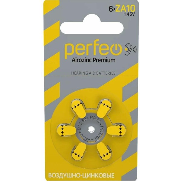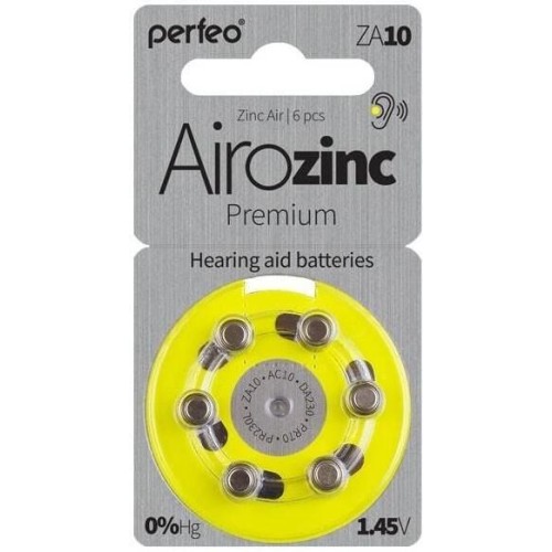 Perfeo Airozinc Premium созданы специально для слуховых аппаратов и отличаются долгим сроком службы при высоком постоянстве выходного напряжения. Используемая технология обеспечит длительное время работы аналоговых и цифровых слуховых аппаратов, благодаря отличной энергоэффективности и увеличенной мощности. Типоразмер ZA10, AC10, DA230, PR70, PR230L. Вид упаковки блистер. В упаковке 6 шт. В коробке 60 шт