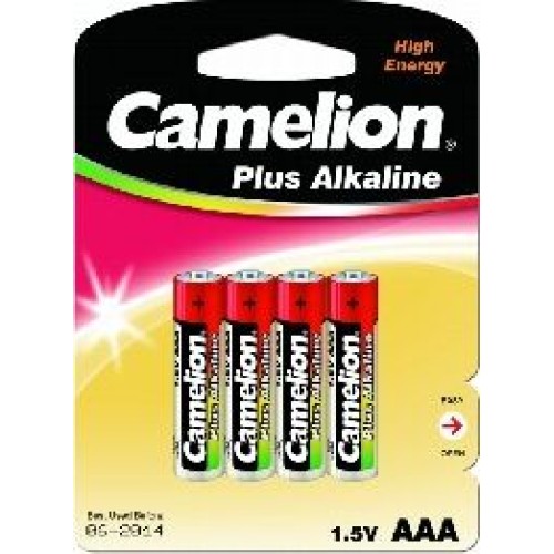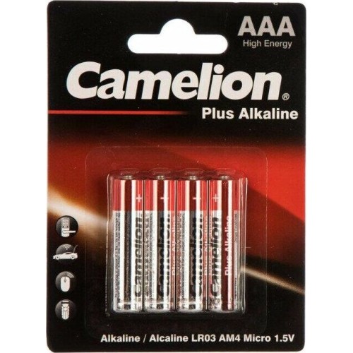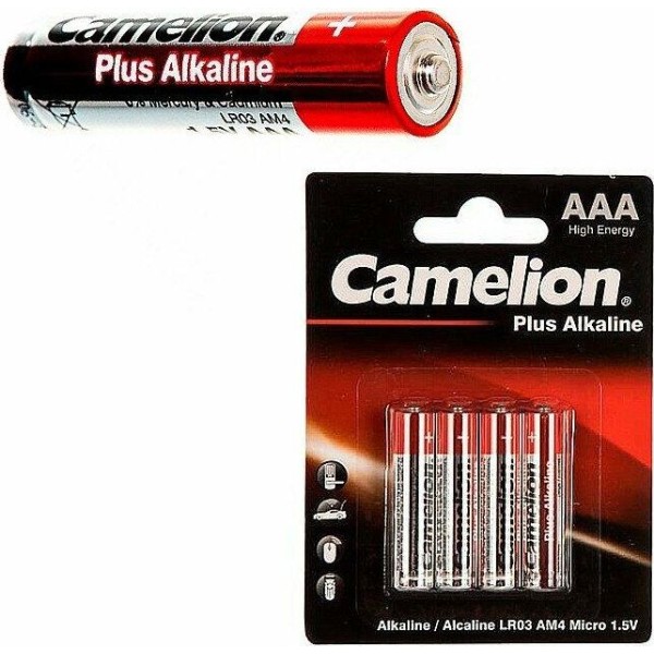 Батарейка алкалиновая Camelion LR03-BP4, напряжение 1,5В, емкость 1250мА*ч, кол-во в упаковке 4 шт., размер упаковки 84x114x11 мм, использовать при температуре от -18 до + 55 °C, хранить в сухом помещении при температуре от +15 до +25°C. Срок хранения 10 лет.