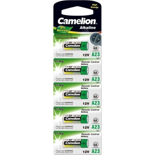 Батарейка алкалиновая Camelion LR23A BL-5 Mercury Free (A23-BP5, батарейка,12В), напряжение 12В, емкость 55мА*ч, кол-во в упаковке 5 шт., размер упаковки 50x160x10 мм, использовать при температуре от -18 до + 55 °C, хранить в сухом помещении при температуре от +15 до +25°C. Срок хранения 3 года.