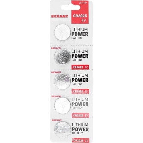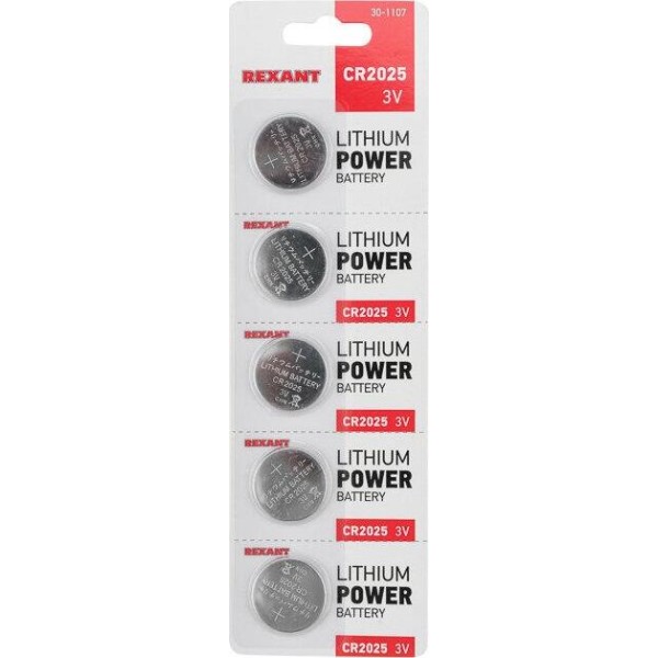 Элементы питания REXANT (30-1107) ЛИТИЕВЫЕ БАТАРЕЙКИ CR2025 5 ШТ. 3 V 160 MAH БЛИСТЕР