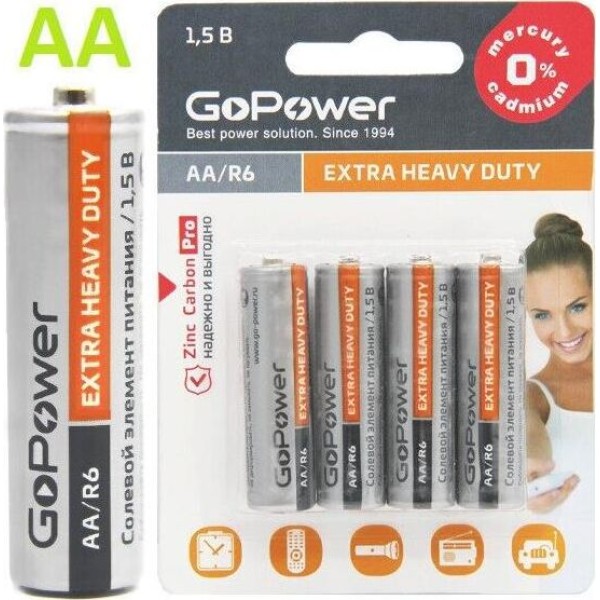 Элементы питания GOPOWER (00-00015594) Extra Heavy Duty AA/ R06