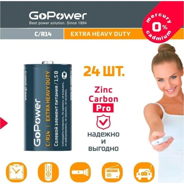 Элементы питания GOPOWER (00-00015596) Extra Heavy Duty C / R14