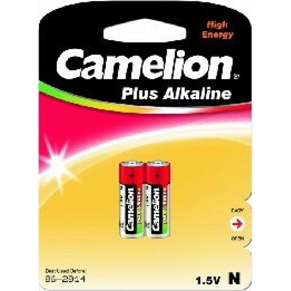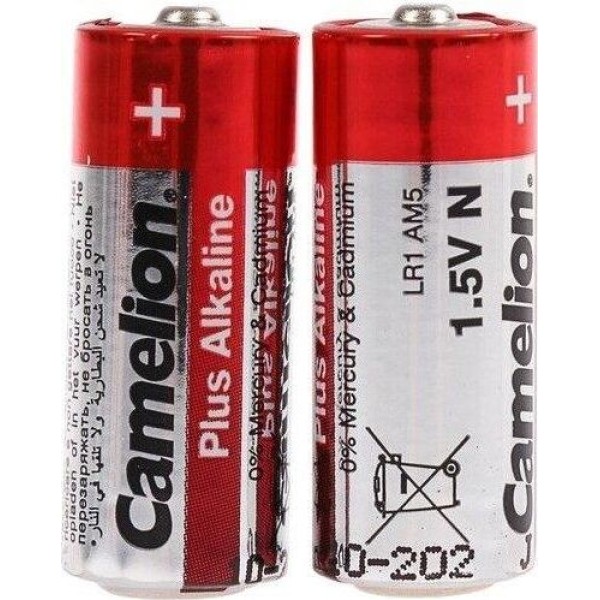 Батарейка алкалиновая Camelion LR1-BP2, напряжение 1,5В, емкость 750мА*ч, кол-во в упаковке 2 шт., размер упаковки 84x114x12 мм, использовать при температуре от -18 до + 55 °C, хранить в сухом помещении при температуре от +15 до +25°C. Срок хранения 3 года.