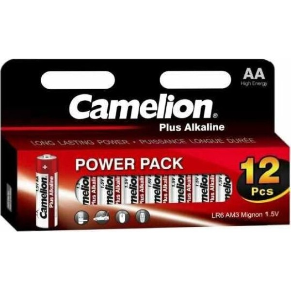 CAMELION LR 6 PLUS ALKALINE BLOCK-12 (LR6-HP12, батарейка,1.5В) Батарейка алкалиновая Camelion LR6-HP12, напряжение 1,5В, емкость 2700мА*ч, кол-во в упаковке 12 шт., размер упаковки 170x99x15 мм, использовать при температуре от -18 до + 55 °C, хранить в сухом помещении при температуре от +15 до +25°C. Срок хранения 10 лет.