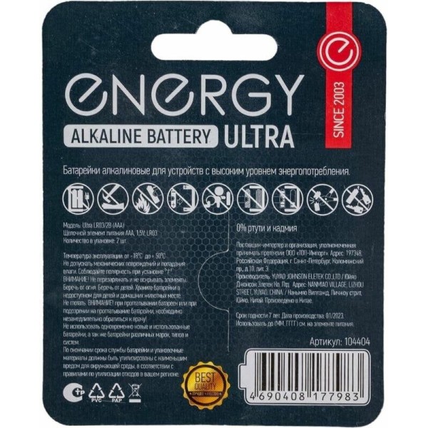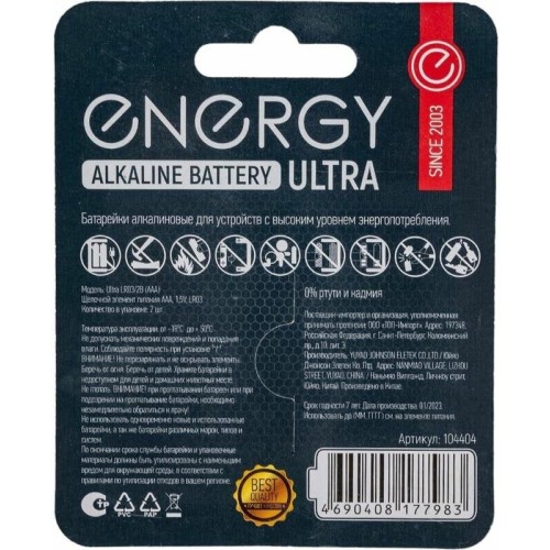Батарейка ENERGY Батарейка алкалиновая Energy Ultra LR03/2B (АAА) (104404)