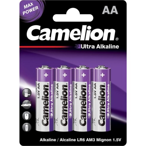 Улучшенные щелочные батарейки для устройств с высоким и импульсным энергопотреблением. Максимально широкий спектр применения. Батарейка Camelion LR6-BP4UT, напряжение 1,5В, емкость 2700мА*ч, кол-во в упаковке 2 шт., размер упаковки 84x114x11 мм, использовать при температуре от -18 до + 55 °C, хранить в сухом помещении при температуре от +15 до +25°C. Срок хранения 10 лет. Улучшенные щелочные батарейки. Проявляют повышенную работоспобность в устройствах с импульсным энергопотреблением.