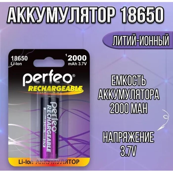 Батарейки PERFEO (PF_C3317) LI-ION 18650 2000MAH/1BL 3.7V
