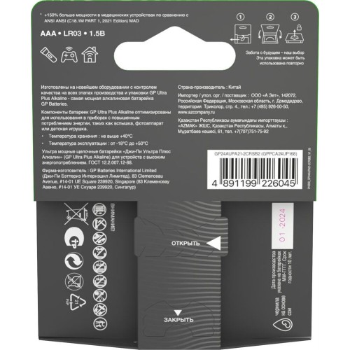 Батарейка GP (1196) 24AUPA21-2CRSB2 (AAA)