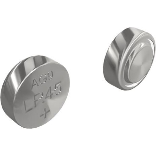 Миниатюрные батарейки применяются в игрушках, часах и другой компактной электронике. Также известны как «часовые батарейки». Характеристики: Типоразмер: LR45, AG9, LR936, G9, 194, GP94A, 394, SR936W Номинальное напряжение: 1,5 В Тип электролита: щелочной