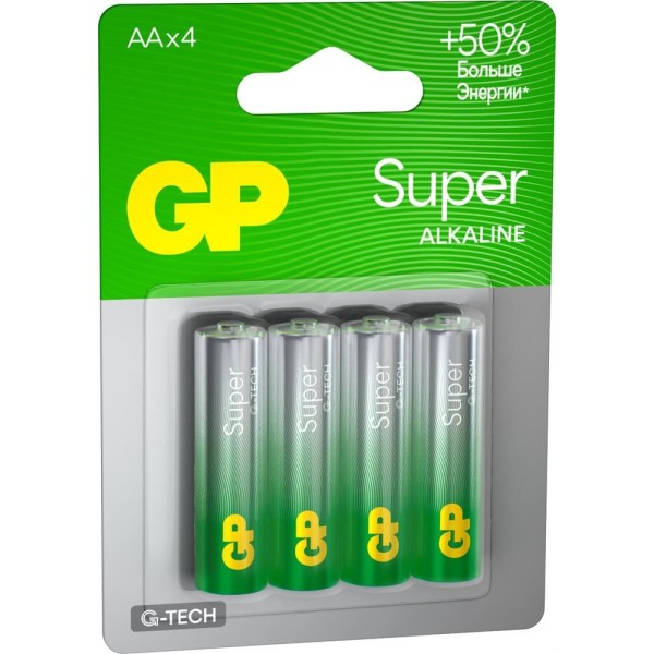 Алкалиновые батарейки GP Super Alkaline G-Tech 15А АA - 4 шт. на блистере