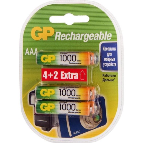 GP AAA Аккумуляторная батарейка Rechargeable 100AAAHC4/2, 6 шт. 1000мAч