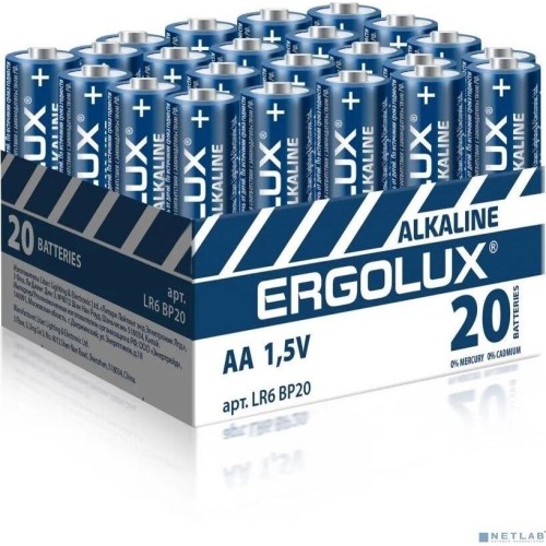 Элемент питания алкалиновый AA/LR6 1.5В Alkaline BP-20 промо (уп.20шт) | код.14675 | Ergolux (3упак