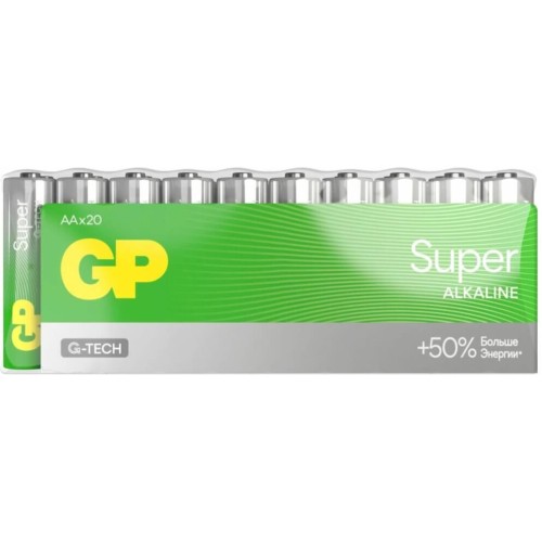 Батарейки GP меняют дизайн - потребительские свойства, модели, артикулы, весогабаритные характеристики, тип упаковки остаются без изменений. Алкалиновые батарейки GP АA 20 шт Super Alkaline 15А 15AA21-2CRSWC20 с увеличенной продолжительностью работы. Набор из 20 элементов питания типоразмера АА. Серия Super Alkaline разработана специально для гаджетов и электронных устройств, которым нужны надежные и мощные источники питания.