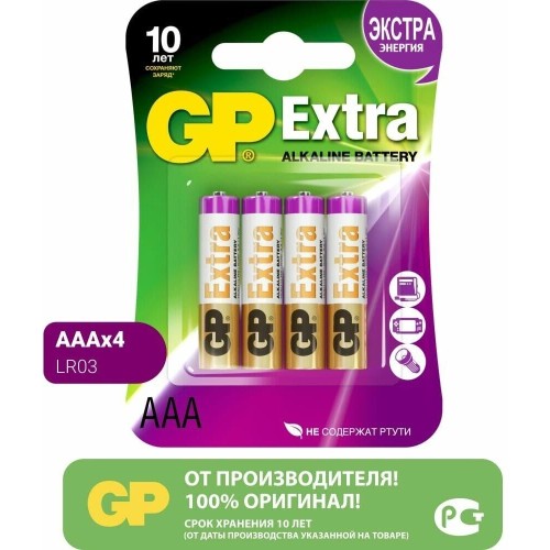 GP Батарея Extra Alkaline 24AXA21-2CRSBC4 AAA (4шт) блистер