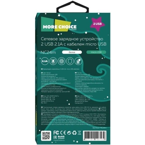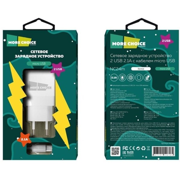 СЗУ MORE CHOICE (4627151196169) NC24m White 2USB 2.1A