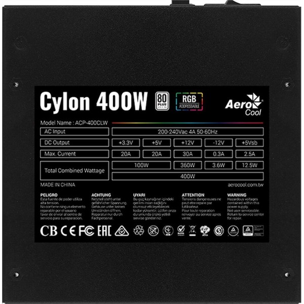 Блок питания AEROCOOL CYLON 400, 400Вт, 120мм, черный, retail