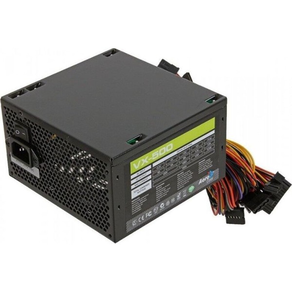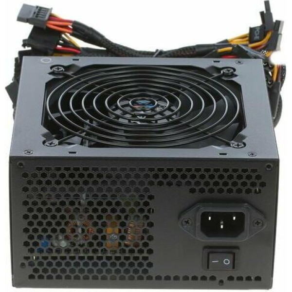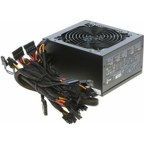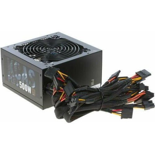 ATX; размер вентилятора 120мм; мощность: 500Вт; активный PFC; стандарт 80 PLUS BRONZE; питание MB и CPU: 24+4+4 pin; питание видеокарты: 2х(6+2) pin; разъемы Molex: 4шт; разъемы SATA: 7шт; цвет: черный; тип поставки Ret