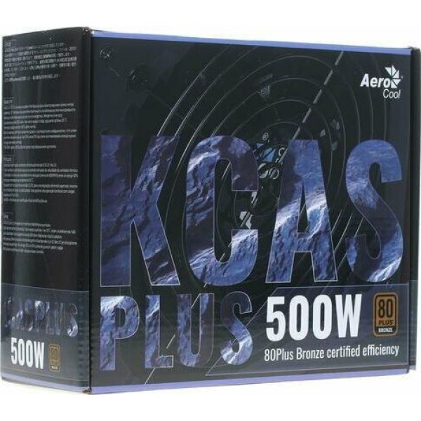 Блок питания AEROCOOL KCAS PLUS 500, 500Вт, 120мм, черный, retail kcas-500 plus
