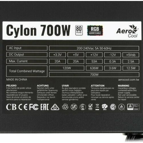 Блок питания AEROCOOL CYLON 700, 700Вт, 120мм, черный, retail