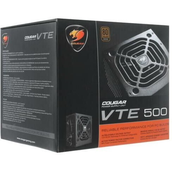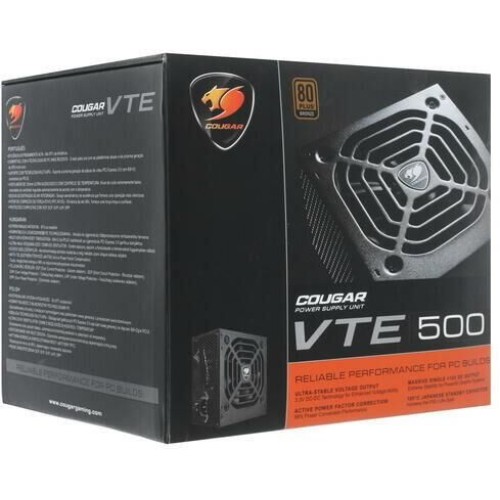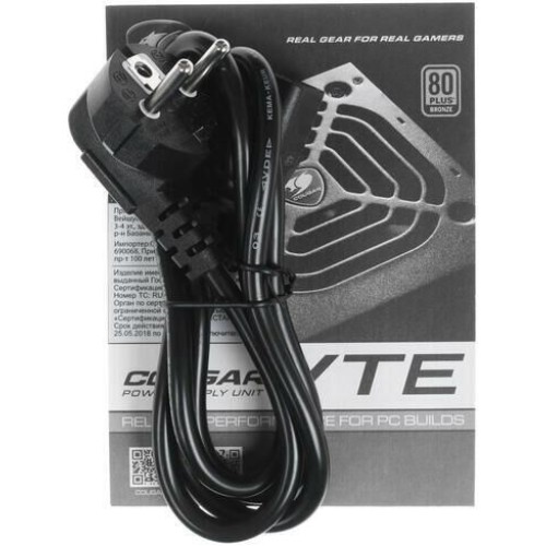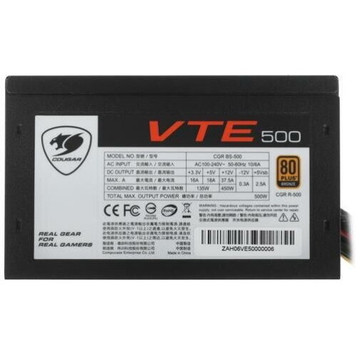 Cougar CGR BS-500R VTE 500 Блок питания (Разъем PCIe-2шт,ATX v2.31, 500W, Active PFC, 120mm Fan, Power cord, 80 Plus Bronze) [VTE500] BULK