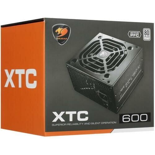 Cougar XTC 600 Блок питания (Разъем PCIe-2шт,ATX v2.31, 600W, Active PFC, 120mm Fan, Power cord, 80 Plus, Japanese standby capacitors) [XTC600] BULK