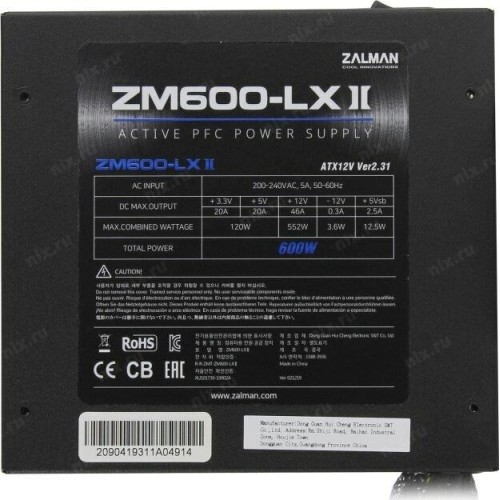 Zalman LX ZM600-LXII 600W, ATX12V v2.3, APFC, 12cm Fan, Ret