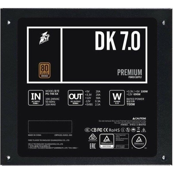 1STPLAYER DK PREMIUM 700W / ATX 2.4, APFC, 80 PLUS BRONZE, 120mm fan / PS-700AX