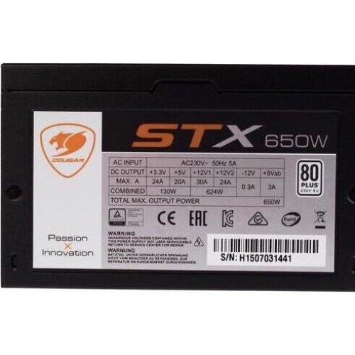 COUGAR Блок питания XTC 650 (ATX v2.31, 650W, Active PFC, 120mm Fan, Power cord, 80 Plus, Japanese standby capacitors) [XTC650] BULK