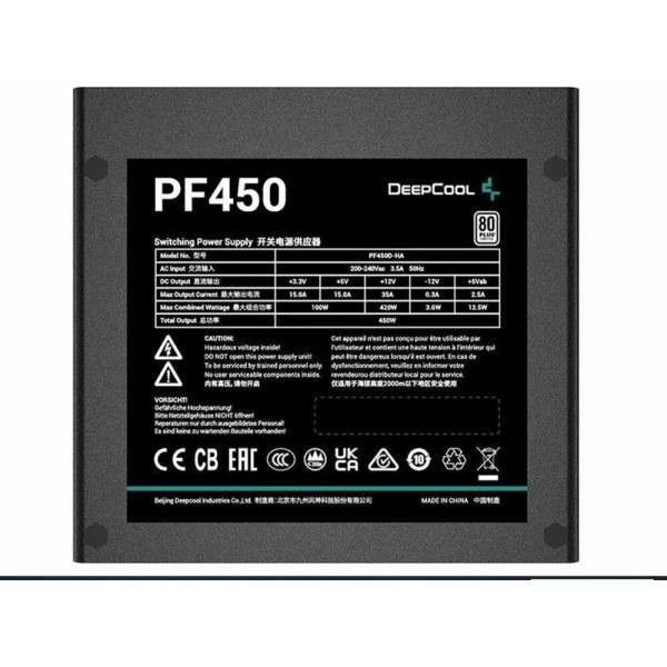 Общая информация Модель товараИнформацияБлоки питания DeepCool серии PF обеспечивают безопасное стабильное электропитание с подтверждённой эффективностью стандарта 80 PLUS. Блоки питания сертифицированы по стандарту 80 PLUS 230V EU, удостоверяющему эффективность 85% под типичной 50-процентной нагрузкой. Чем выше эффективность, тем меньше потери энергии, меньше рабочие температуры и лучше экономия средств.
