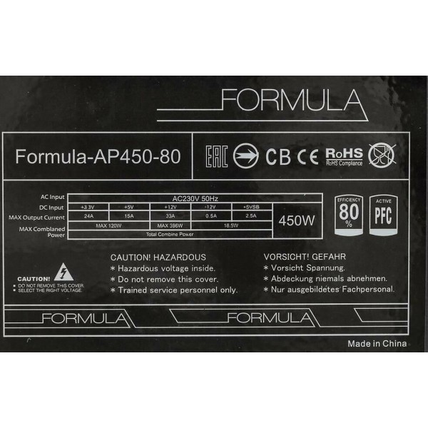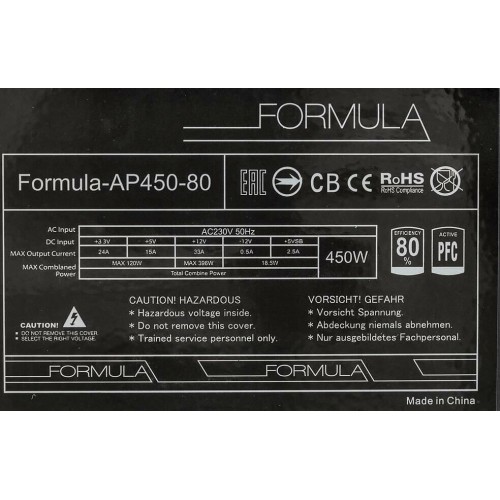 FORMULA Блок питания -AP450-80, 450Вт, 120мм, черный, retail