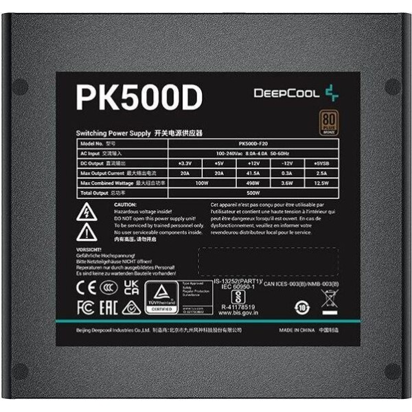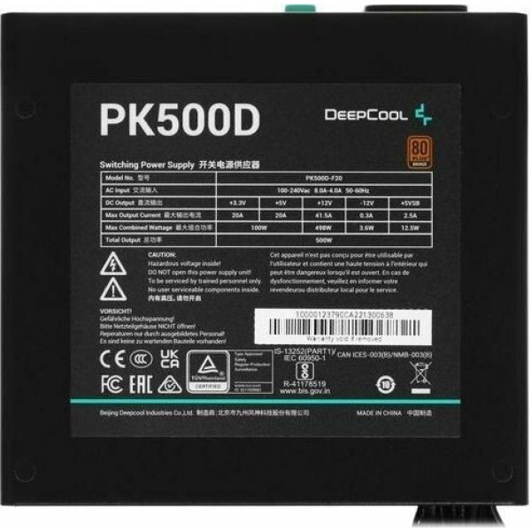 Общая информация Модель товараИнформацияБлоки питания DeepCool серии PK-D обеспечивают надежность питания и низкий уровень шума во в течении всего периода эксплуатации, а энергоэффективность соответствует требованиям сертификата 80 PLUS Bronze Конвертер DC-DC, разработанный для шин +3,3 В и +5 В, помогает добиться более точного регулирования напряжения и улучшить совместимость системы с компонентами следующего поколения.