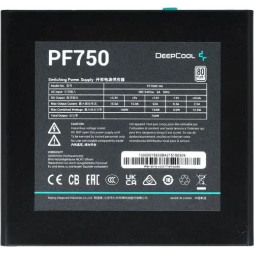 Общая информация Модель товараИнформацияБлоки питания DeepCool серии PF обеспечивают безопасное стабильное электропитание с подтверждённой эффективностью стандарта 80 PLUS. Блоки питания сертифицированы по стандарту 80 PLUS 230V EU, удостоверяющему эффективность 85% под типичной 50-процентной нагрузкой. Чем выше эффективность, тем меньше потери энергии, меньше рабочие температуры и лучше экономия средств.