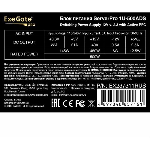 Форм-фактор: ATX; Цвет корпуса БП: Стандарт; Мощность: 500 Вт; Максимальная нагрузка (сила тока по линиям): +3.3V - 22A, +5V - 21A, +12V - 20A, +5VSB - 2.5A, -12V - 0.5A; КПД: 81%; PFC: н/д; Уровень шума: 24 дБ; Разъемы питания для видеокарт: нет; Разъемы питания материнской платы и процессора: 24+8+4+4 pin; Длина кабеля питания материнской платы: 300 мм и более; Разъемы Molex: 3 шт; Разъемы SATA: 5 шт; Разъемы для FDD: 1 шт; Прочие особенности и свойства: Защита от коротких замыканий (SCP)