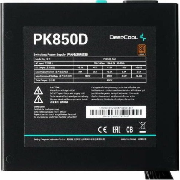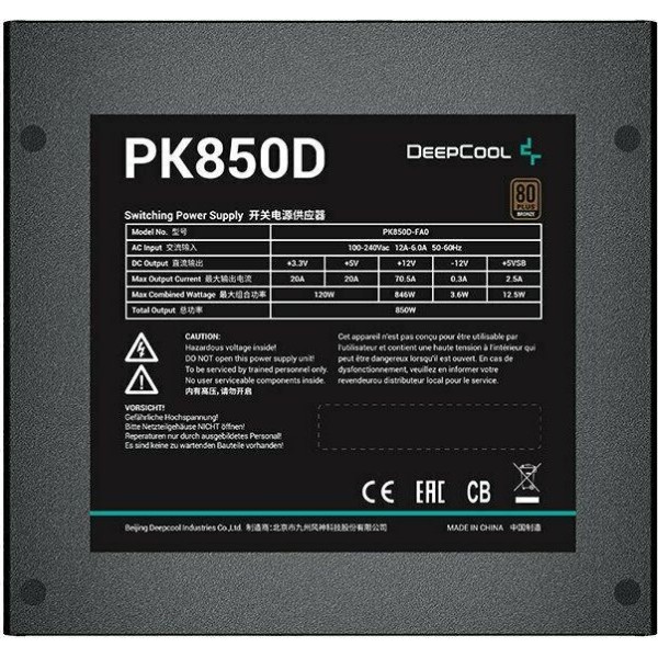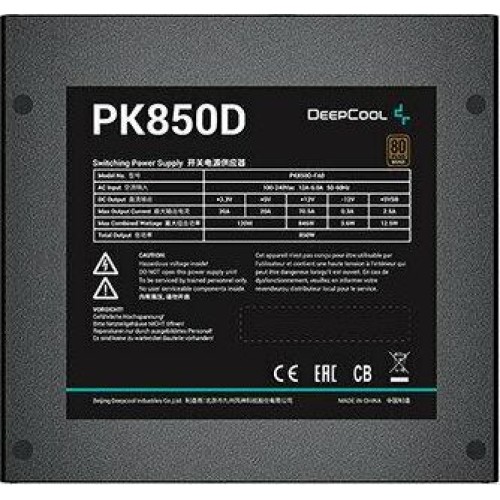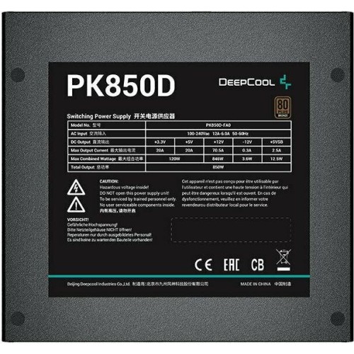Форм-фактор: ATX; Цвет корпуса БП: Черный; Мощность: 850 Вт; Максимальная нагрузка (сила тока по линиям): Ток по линии +3.3 В 20 A, Ток по линии +5 В 20 A, Ток по линии +12 В 1 70.5 A, Ток по линии -12 В 0.3 A, Ток по линии +5 В Standby 2.5 A; Сертификат 80 PLUS: Bronze; КПД: 85%; PFC: Активный; Разъемы питания для видеокарт: 4 x PCI-E 6/8-пин; Разъемы питания материнской платы и процессора: 24+8+4+4 pin; Длина кабеля питания материнской платы: 500 мм и более; Разъем питания видеокарты PCI-E 16-pin: нет