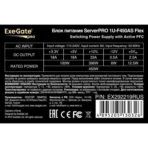 Основные характеристики Форм-фактор: Flex ATX PFC (Корректор фактора мощности): Активный Максимальный входной ток, А: 8 Диапазон входных частот, Гц: 47-63 Среднее время наработки на отказ, часов: 50000 Питание Входное напряжение, В: 115-242 Энергоэффективность (соответствие стандарту 80 PLUS®), %: 80% (80 PLUS) Максимальная выходная мощность, Вт: 450 Охлаждение Вентилятор, см: 1 x 4 см Уровень шума, Дб: 46 Выходной ток: +3.3B, А: 18 +5B, А: 18 +12B1, A: 33 +5Bsb, A: 2,5 -12B, A: 0,5 Мощность