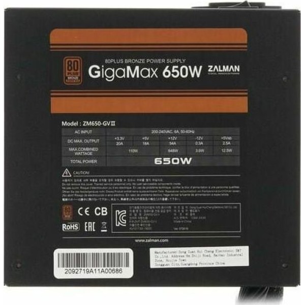 ZALMAN Блок питания ATX 650W ZM650-GVII