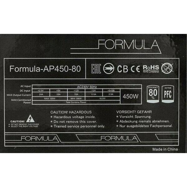 FORMULA Блок питания ATX 450W AP-450ММ 80 PLUS WHITE (20+4pin) APFC 120mm fan 6xSATA RTL