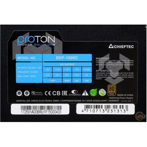[Блок питания] CHIEFTEC Proton BDF-1000C, 1000Вт, 140мм, черный, retail
