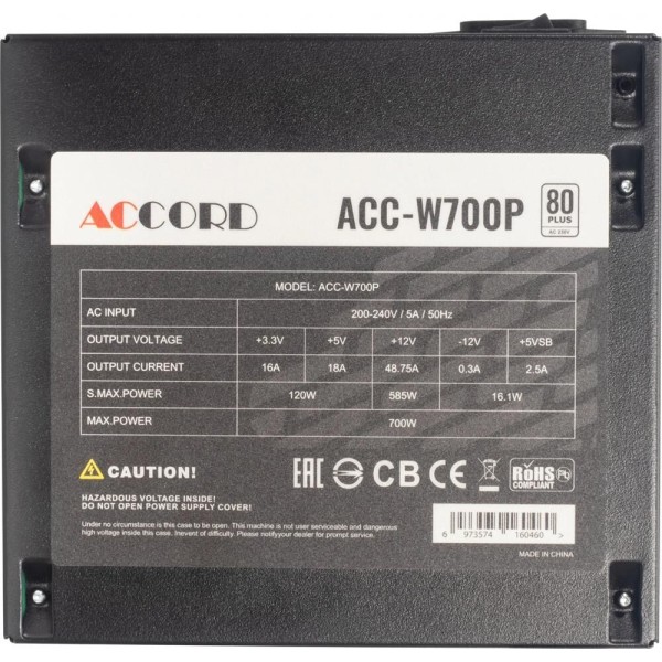 ACCORD Блок питания ATX 700W ACC-W700P 80 PLUS WHITE (20+4pin) 120mm fan 6xSATA RTL