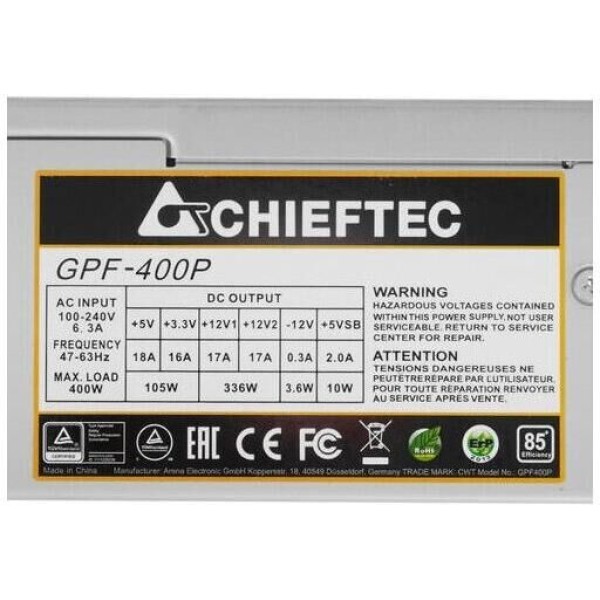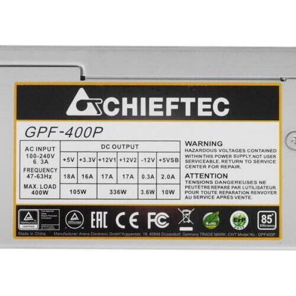 CHIEFTEC Блок питания SMART GPF-400P, 400Вт, 80мм, серый