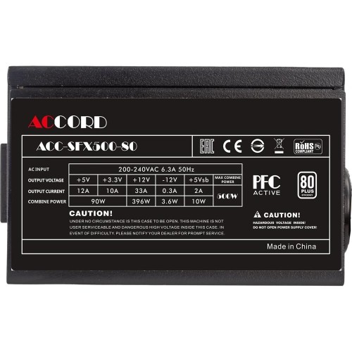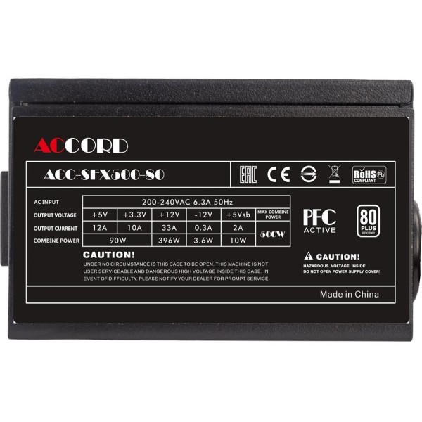 ACCORD Блок питания SFX 500W ACC-SFX500-80 (20+4pin) APFC 80mm fan 3xSATA RTL