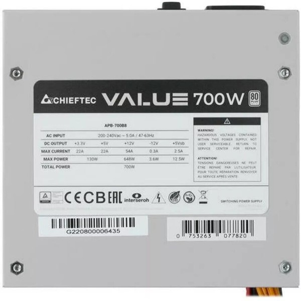 CHIEFTEC Блок питания ATX 700W Value APB-700B8 80+ (20+4pin) APFC 120mm fan 4xSATA
