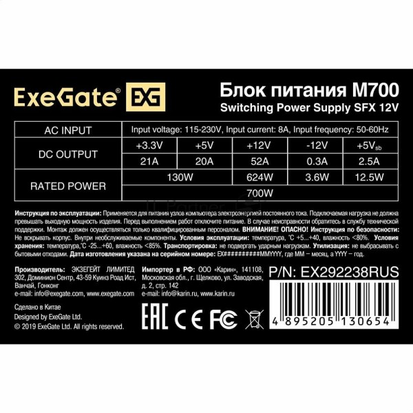 Блок питания ExeGate EX292238RUS M700 700W - это высококачественное устройство, которое обеспечивает стабильное и надежное питание для вашего компьютера. ExeGate EX292238RUS M700 700W имеет форм-фактор SFX, что позволяет устанавливать его в компактные корпуса. Это делает его отличным выбором для тех, кто хочет сохранить пространство на рабочем столе, но при этом обеспечить своему компьютеру качественное питание.