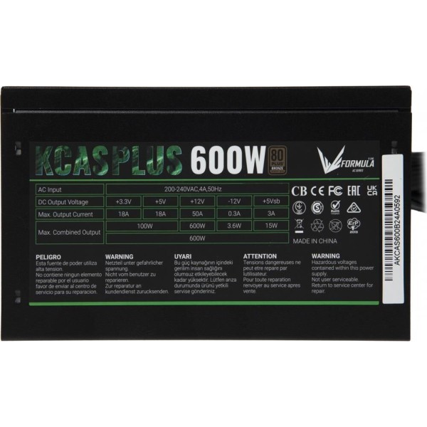 FORMULA Блок питания ATX 600W AC KCAS PLUS 80+ bronze 24pin APFC 120mm fan 7xSATA RTL